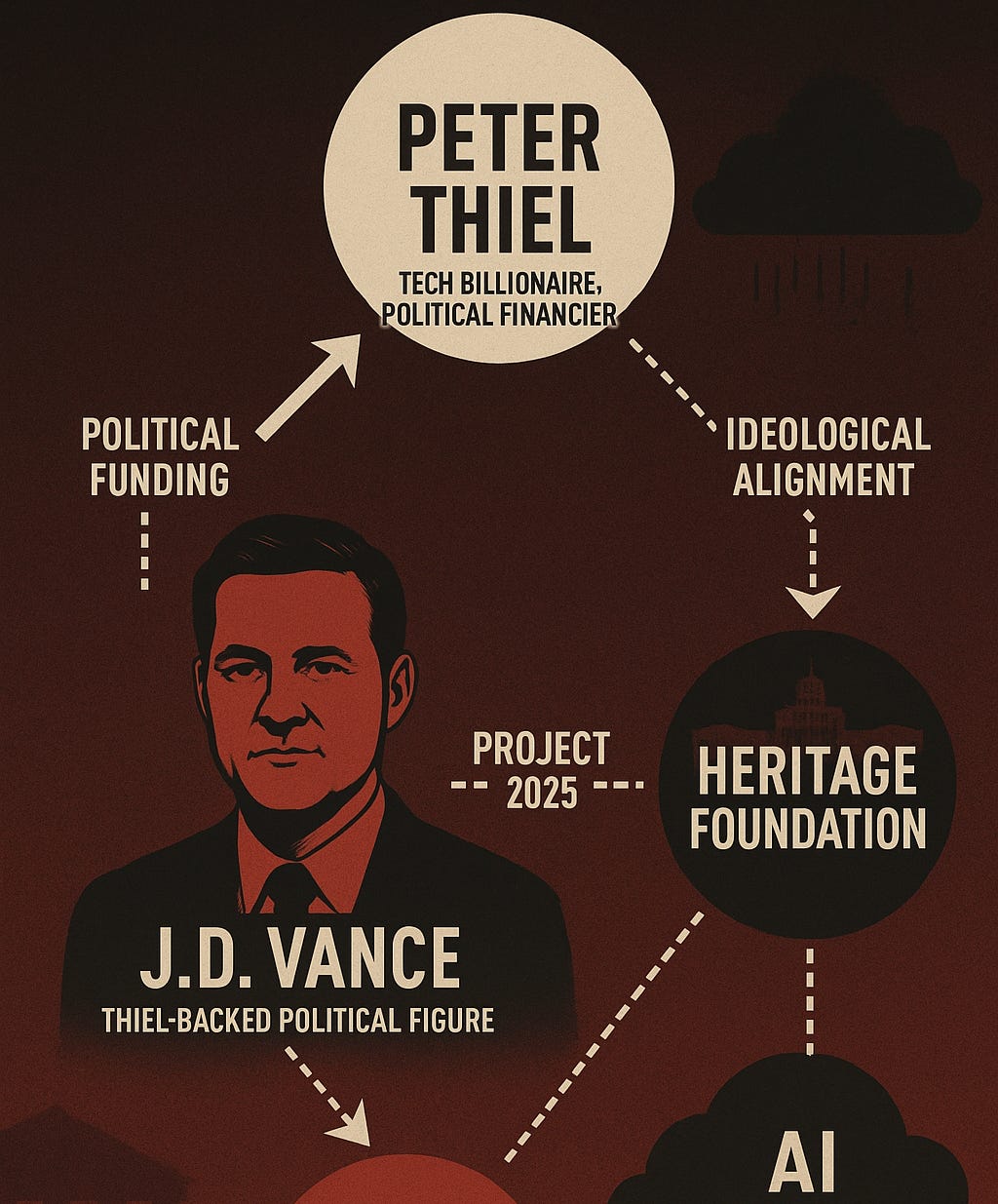 The same networks funding AI—yes, including Thiel-backed ventures tied to J.D. Vance and organizations like the Heritage Foundation—are shaping policies designed to centralize power. The Heritage Foundation’s own Project 2025 blueprint openly outlines an aggressive expansion of executive authority.