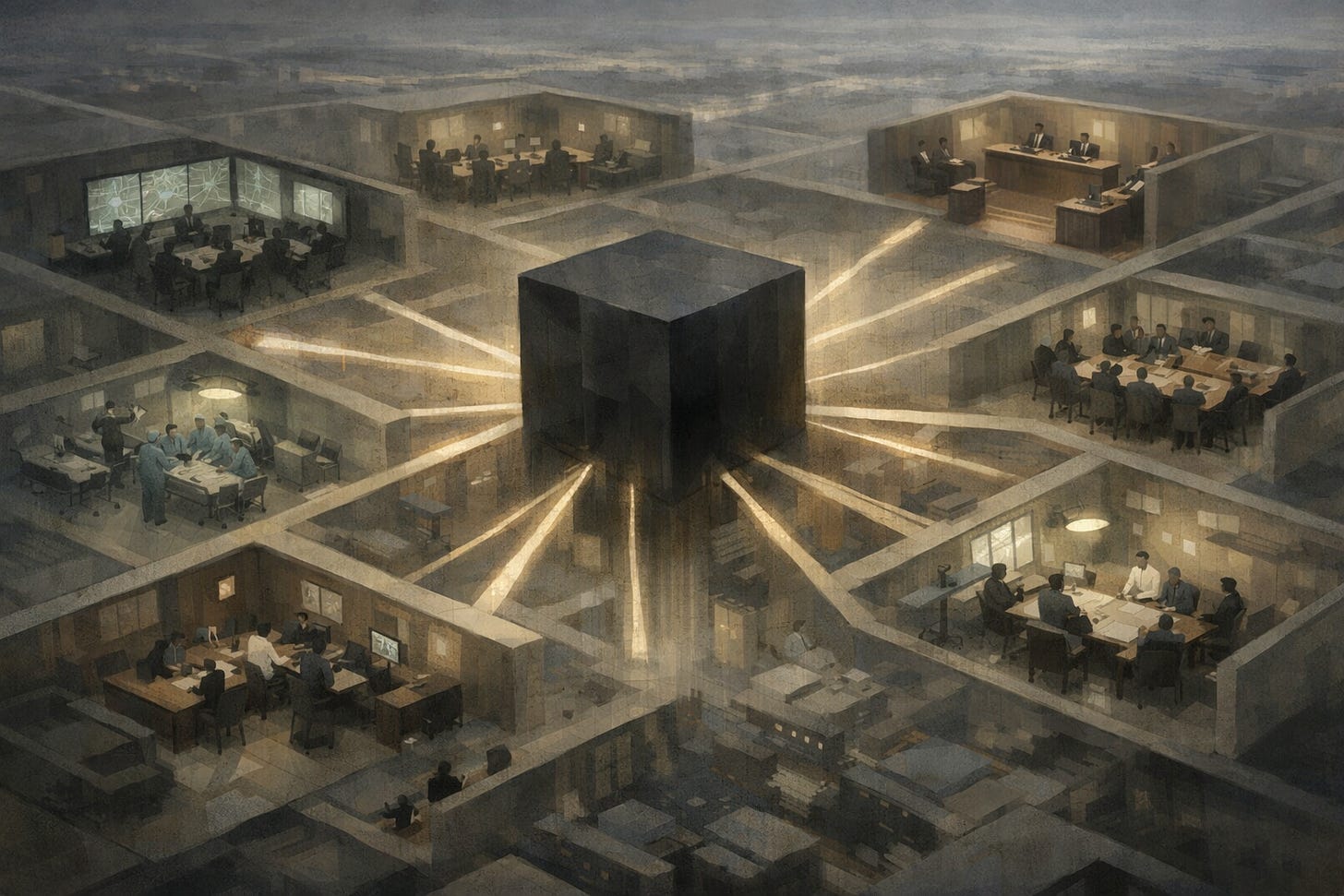 At the same time, power is centralizing. A small number of corporations and state actors increasingly shape how decisions are made across society, through systems that operate at scale and resist public scrutiny. This isn’t a neutral redistribution of labor; it is a redistribution of authority, carried out through infrastructure rather than law.