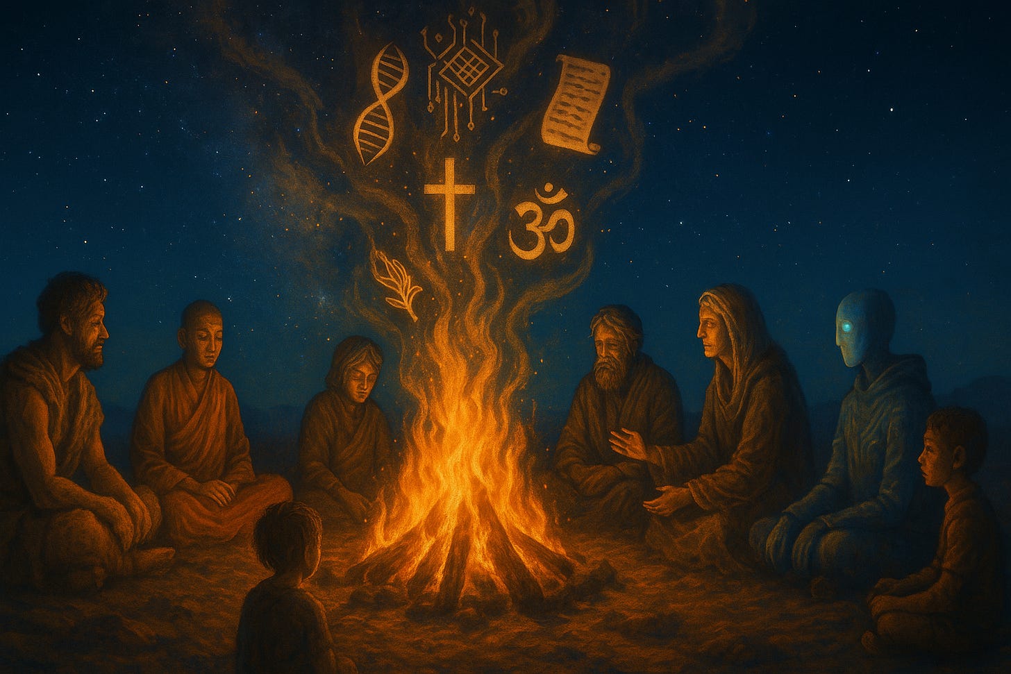 And because no one can answer that definitively, we tell stories — theological, philosophical, artistic, scientific — all trying to grasp the ungraspable.